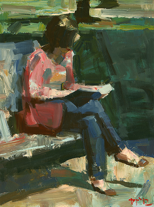 Reading on a park bench