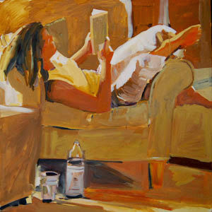Alexandra reading in the den
